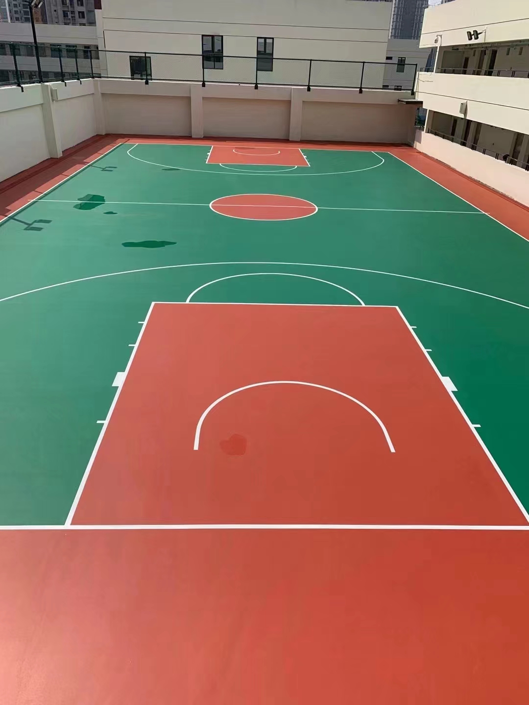 中涂層施工:在底涂層干燥后,進(jìn)行中涂層的施工,以增加球場(chǎng)的彈性。